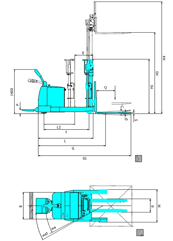 | Overall length (mast no reach)(整車長度)(門架沒前移含貨叉) | G | mm | 2020 | 2220 | 2320 | |
