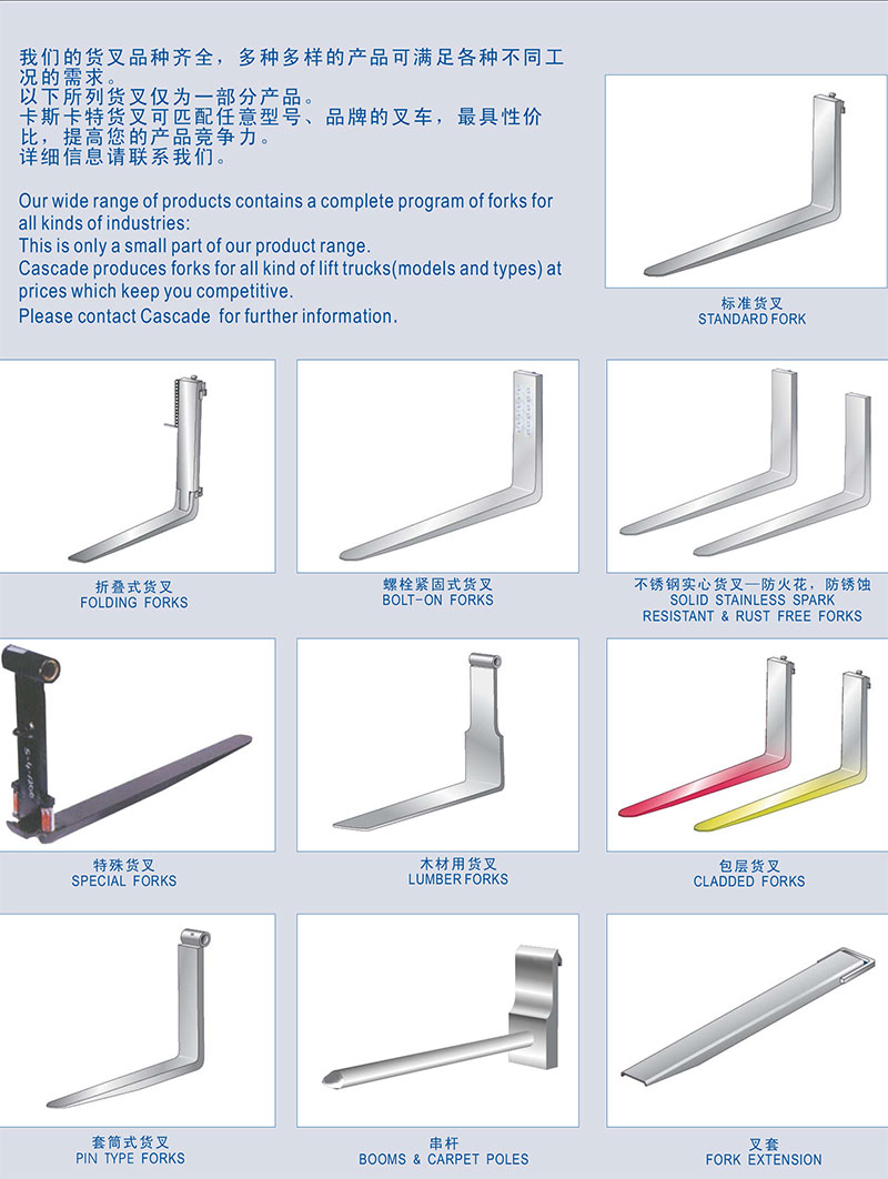 配件供應中心卡斯卡特貨叉(Forks)_叉車配件_配件供應中心_產(chǎn)品中心_廈門永新昌機械設備有限公司
